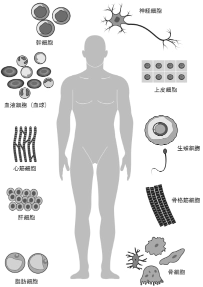 体にはさまざまな種類の細胞があり、
